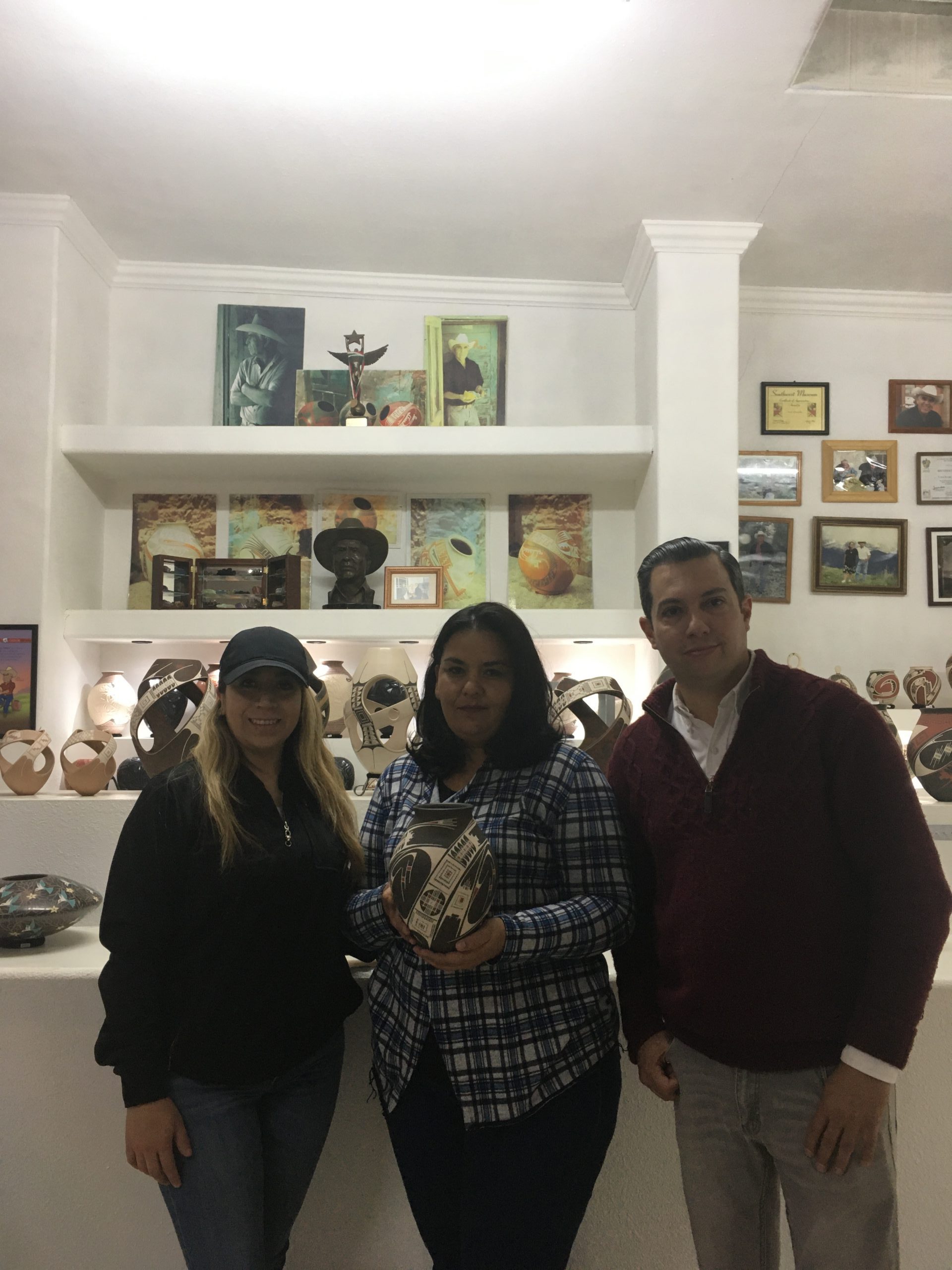 Laura Quintana Valenzuela: Olla con grecas tradicionales, en colores de cafey blanco